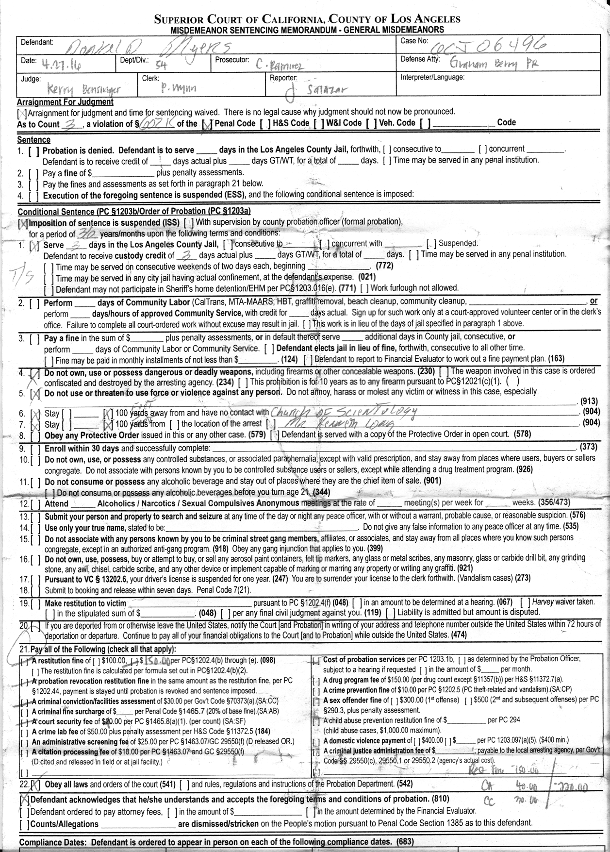 100 foot protective order for Office of Special Affairs member Ken Long. |