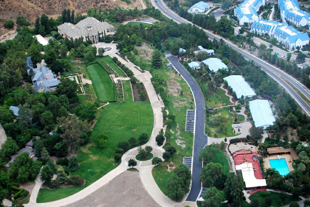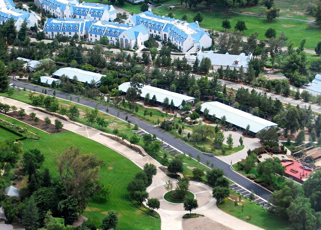 The soundstages look like a castle and the ever present lakes say "we are so rich we can waste desert water." The edge of a sewage lake can be seen at far left. |