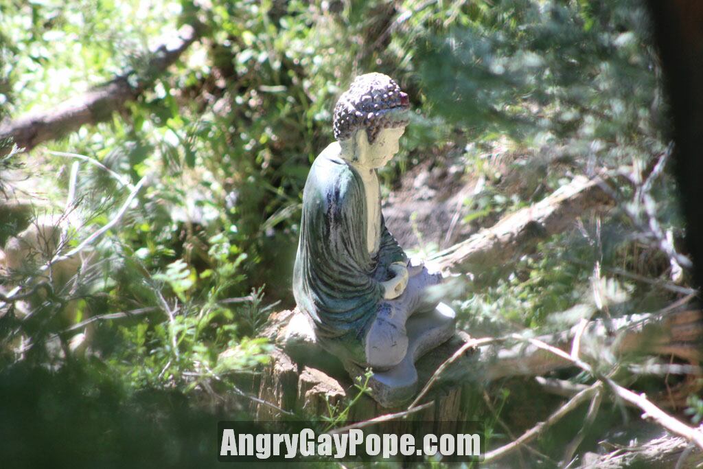 A budda statue in the middle of the woods for no reason. Only Scientologists