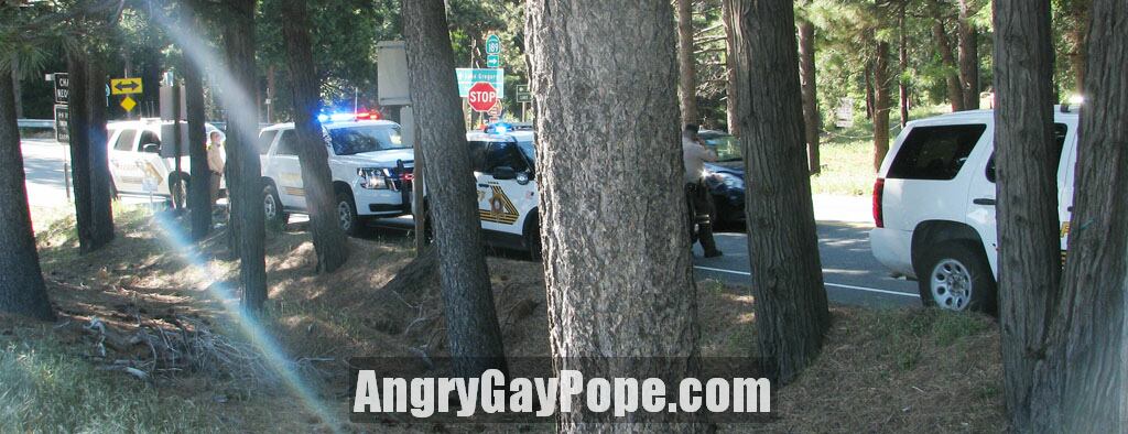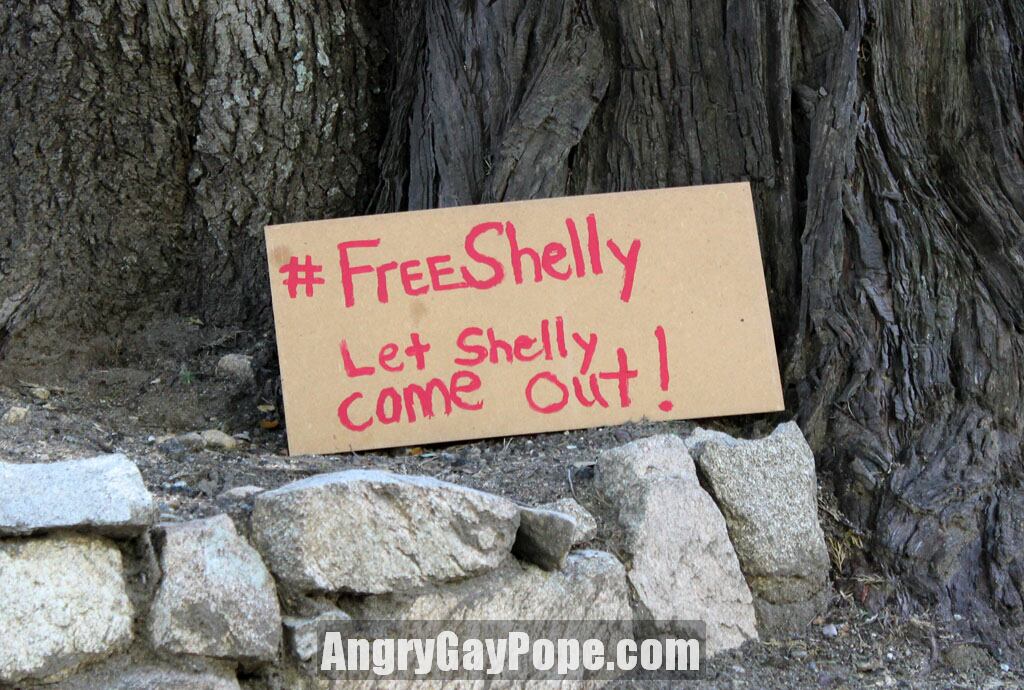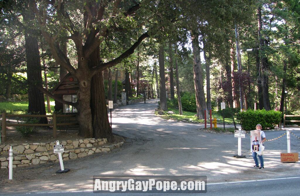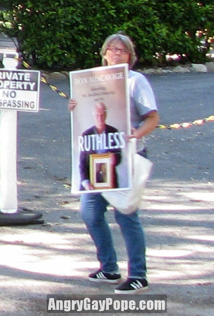 Gay protesters, the Angry Gay Pope, Nasty Nathnial (left) and GI Jenny visited