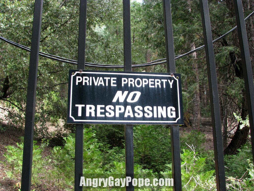An illegal "no trespassing" sign on the north fence. It is too