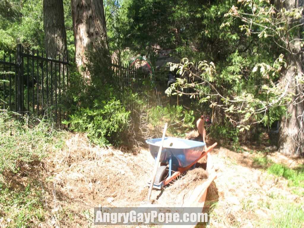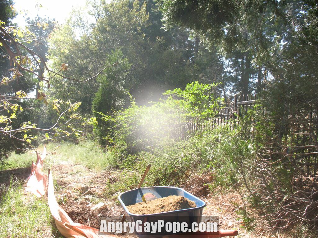 a massive landscaping operation with possibly a hundred trees. The fence area