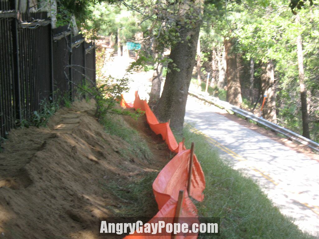 Orange "silt screen" keeps dust down |
