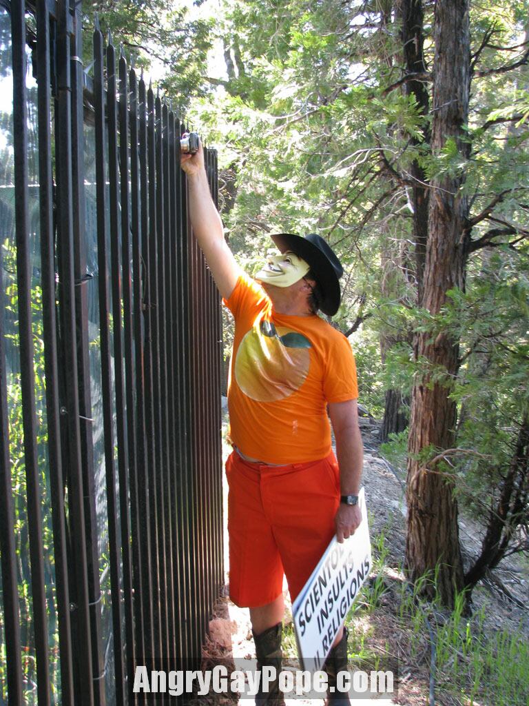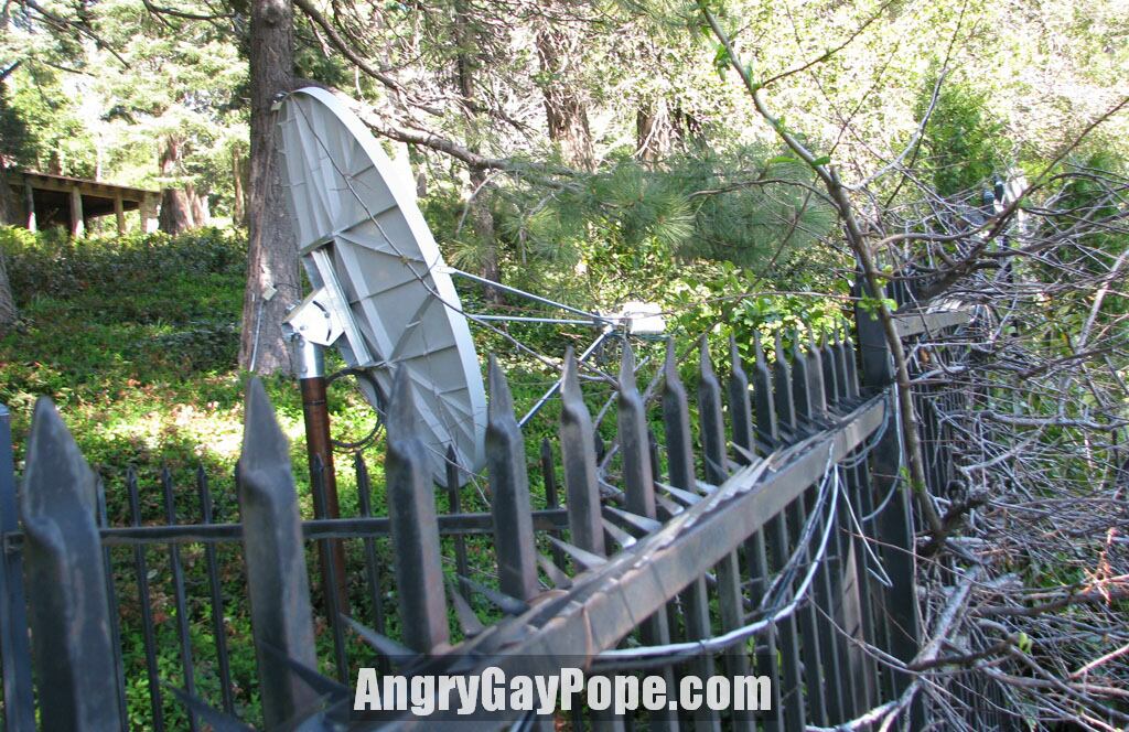 The first page of fifty photos from the raid by the Angry Gay Pope and Anonorange on May 15, 2010. Featuring security cameras, giant survivalist energy tanks and a fence full of UltraBarrier. The scale of the giant three story transmission tower was something to behold as was the submarine sized tank of emergency propane. This would be used survivalist style in the event of nuclear war. The radio towers no doubt connect to Gold Base in Hemet and also Hollywood/Los Angeles. In the past Scientology has owned many radio licenses. |